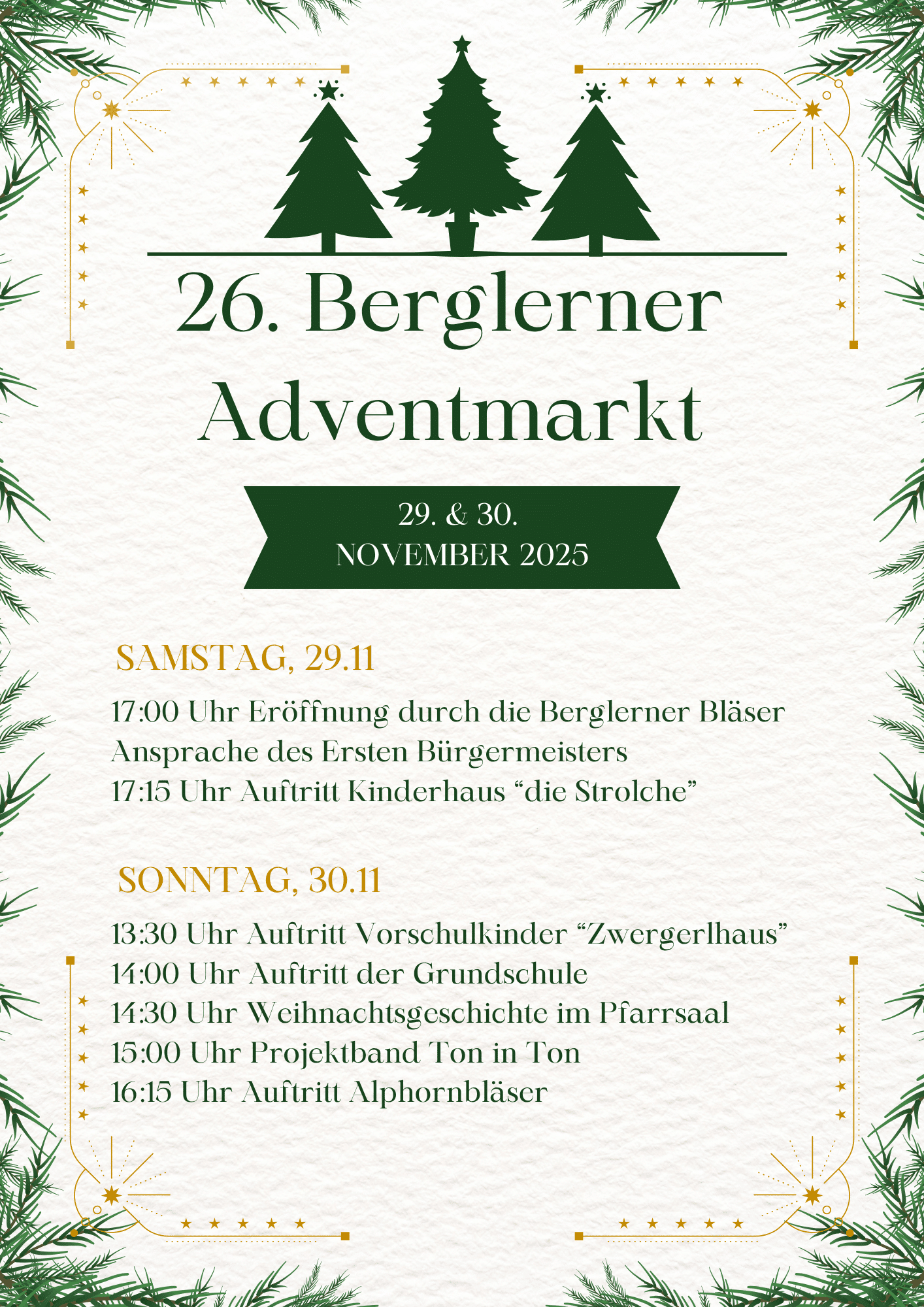 es ist mir eine außerordentliche Freude, dass ich Sie alle im Namen der Gemeinde Berglern und im Namen der Standbetreiber herzlich zu unserem 26. Berglerner Adventmarkt am 29. und 30. November einladen darf!